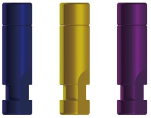 Copia pozitiva a implantului dentar pe modelul de lucru al tehnicianului dentar, redand pozitia implantului din cavitatea bucala.